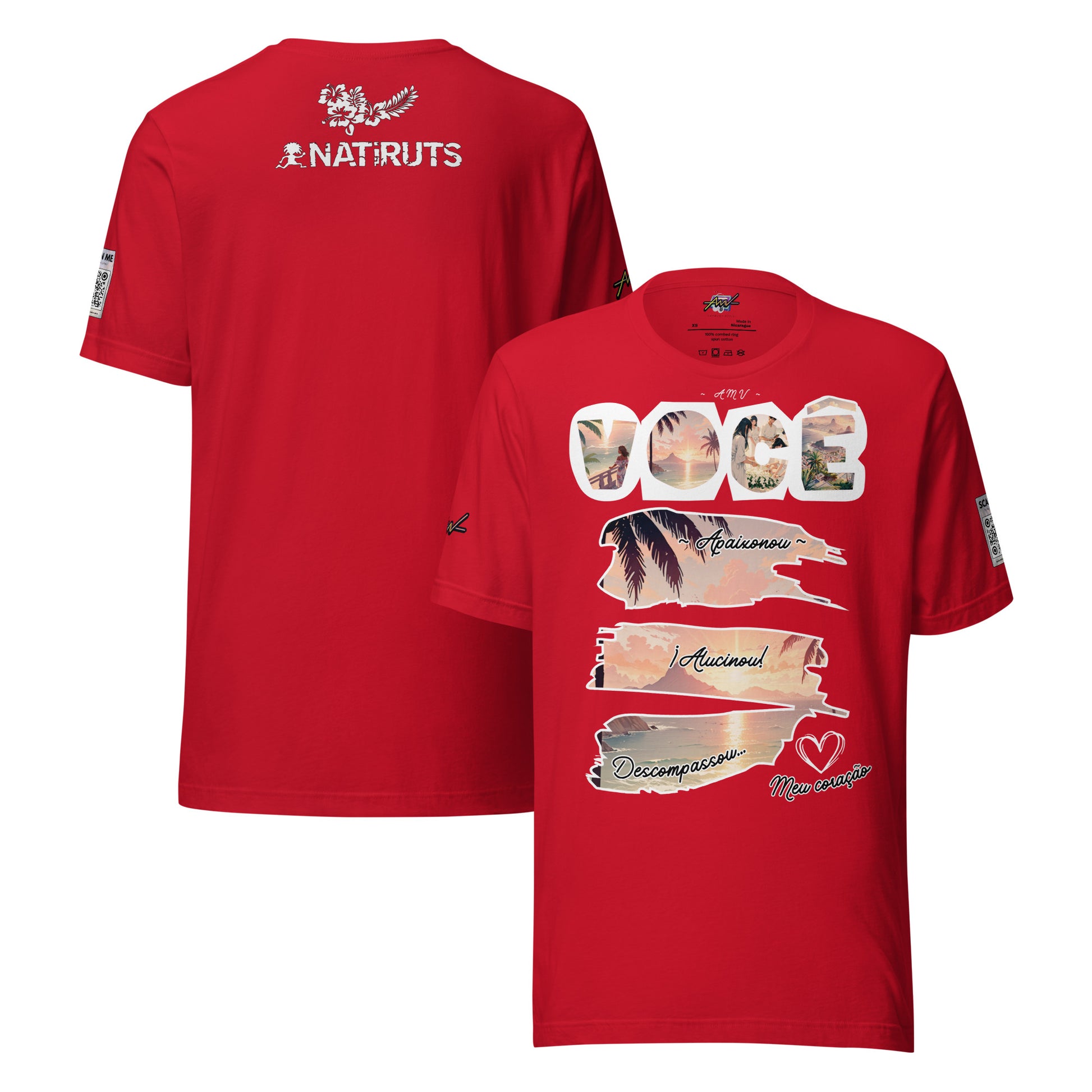 Deja que la buena vibra del reggae y la música brasileña te envuelvan con esta playera única, inspirada en la inolvidable canción "Você Me Encantou Demais" de Natiruts. Diseñada para reflejar frescura y estilo, es la prenda perfecta para los días cálidos de verano.
